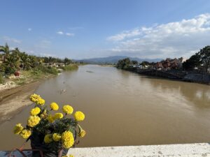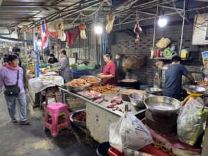 We made it to our hotel and then had to go get lunch and kill some time because they wouldn’t let us check in until 2:00 pm. After lunch we drove up to Tha ton to do some reconnaissance on the availability of boats to hire for our trip to Chiang Rai. We then returned to Fang and walked through Fang’s Sunday market on our way to and from dinner.