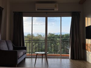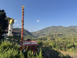 The road was pretty curvy and a bit chaotic with slower scooters and trucks resulting in lots of passing and hard acceleration and braking. The scenery got progressively better as we slowly left the sprawl of Chaing Mai behind and made our way to the heavily agricultural Fang district. We passed bananas and papayas growing on the side of the road, which reminded me of both Hawaii and Costa Rica. We also passed by orchards of what looked like mango trees and another fruit tree that wasn’t immediately recognizable to me. There were also some smaller fields of vegetables as well as rice. Some rice was fields were just being plants, while other fields had tall brownish rice that looked ready for harvest.