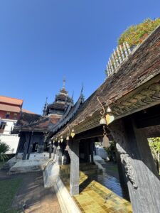 Wat Sri Suphan (the silver Temple), was founded around 1500 and is unique in that it is completed covered (inside and out) with silver metalwork. Using a combination of silver, nickel and aluminum paneling with intricate art. It is a small but impressive temple.