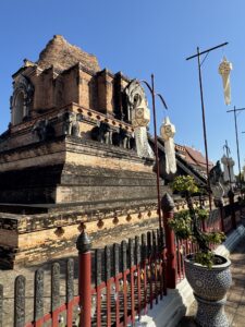 Wat Chedi Luang (Temple of the big stupa) is another Wat complex whose origin dates back to the 14th century. It is another important temple in the Old City. This Wat originally held the famed emerald Buddha that moved to Luang Prabang (Laos) in the mid 1500s before being reclaimed by the Thailand. The emerald Buddha now resides in the royal palace complex in Bangkok (see Bangkok post). Wat Chedi Luang as its name suggests is known for its large Lana style chedi that was constructedin 1441.