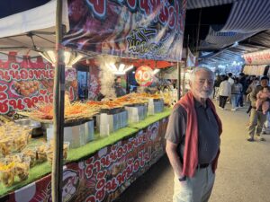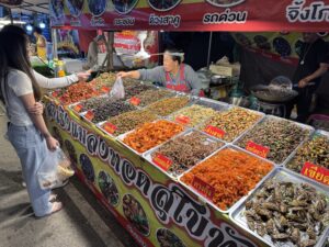 At lunch we learned of a local fair that was happening, so we visited that in the evening. There we saw and smelled a wide variety of Thai “fair food,” displays from various regions, technical schools, a local national park; and heard competing loudspeakers of a local Thai comedian duo (apparently not very funny as no one was laughing), and music from the main stage before the main event of the night started. We left the fair free 1 1/2 hours or so and went to nearby restaurant for dinner. We were the only party there at the begging but a few other groups showed up when the live music started. A small bad that played U.S. covers. They were surprisingly good though I am not sure how much they really understood what they were saying, because they didn’t react when just after they finished playing “Hotel California” they asked us where we were from and I replied “California.”