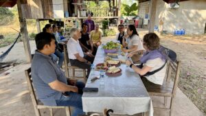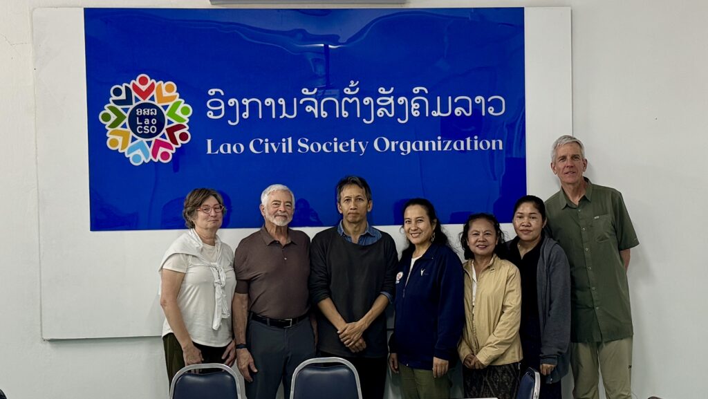 TAG shares office space in Vientiane with several other Lao Civil Society Organizations. They have a staff of 7 people, with just one full time employee. The other six staff are part time employees, many of whom also work parttime for other nonprofits. We were picked up promptly at our hotel with the first stop being TAG’s office. We met in a conference room shared by several organizations. The space was decorated with professional signs expousing the work of the Laos Civil Society Organization (LCSO). According to the logos on those signs, the LCSO appears to receive funding from the EU, Germany, and Switzerland and has identified a wide range of areas to focus on, including work on clearing unexploded ordinance (left over from the Indochina War (Vietnam) when the U.S. dropped over 2 million tons of ordinance, including 270 million cluster bombs), promoting sustainable development, inclusive societies, inclusive education, health initiatives, reducing hunger and inequalities, protecting ecosystems through sustainably managed forests, promoting sustainable agriculture. TAG’s projects fall squarely in the areas of protecting ecosystems and sustainable agriculture focuses of the LCSO
