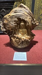 The museum is a private enterprise with very high admission fees (particularly high for residents) and from what I’ve been able to piece together is a legacy project for a wealthy Lao businessman to house his personal collection of wood carvings. While one gallery contained a collection of buddha’s from throughout the country and wider region indicating that they were being preserved at the museum because many of the original locations were unable to protect and preserve them, I wonder about the provenance of some of the older artifacts. Many of the wood carvings contained neither a date of carving nor attribution to the artists creating them. This seemed very odd to me until I read a small explanation of how the museum came to be as we exited the building. After learning that many of the pieces displayed were from the personal collection of Phisth Sayathith, the founder of the museum. Since almost all the pieces were of the same style – carvings that preserved some of the natural wood’s appearance, I suspect that Mr. Sayathith employed carvers and would supply them with interesting burls, roots and other pieces of discarded wood.