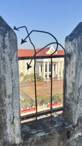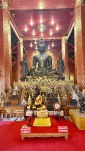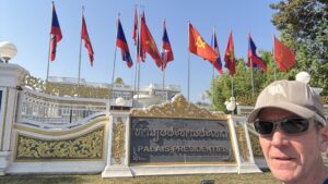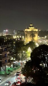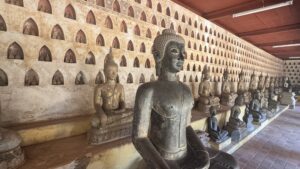 The only downside to our hotel was that the location was a little removed from the main hotel and restaurant area near the river. It was, however, close to the Patuxai monument which Laos compares to the Arch de Triumph. The Patuxai monument is dedicated to those who fought for independence from France and is used to extoll the virtues of communist victory over western influences. I was the first one to arrive at the monument stairways when they opened and enjoyed climbing the stairs, reading the exhibits, and enjoying the views in solitude.