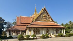 Vientiane is the capital of Laos. It has a reputation for being a rather sleepy capital with not much to offer tourists. We had originally planned to stay in Vientiane for just two days during which we would be occupied with site visits and meetings. However, we were unable to get train or plane tickets on the desired day so we flew from Luang Prabang to Vientiane a day earlier than planned. We thus had an entire day to explore the city. The temperature was noticeably warmer in Vientiane than it had been in northern Thailand and Laos, so I decided to do a short walking tour of Vientiane in the morning, followed by an afternoon relaxing by the hotel pool. It was a great way to spend the day.