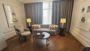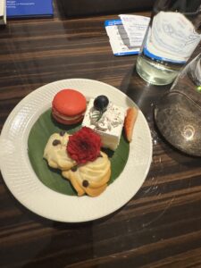 Our hotel in Vietiane was even nicer than the one in Luang Prabang. We stayed at the Souphattra Hotel Vientiane which was a step-up from the very nice Victoria Xiengthong Palace in Luang Prabang. The rooms were large and modern with a separate sitting area, work desk, and large bathroom. There were complimentary snacks and the minibar contained complementary drinks. The coffee was very good. The complementary breakfasts offered extensive choices, and the turn-down service each night included a small plate of desserts. I felt it was an amazing value at a little less than $100 a day.